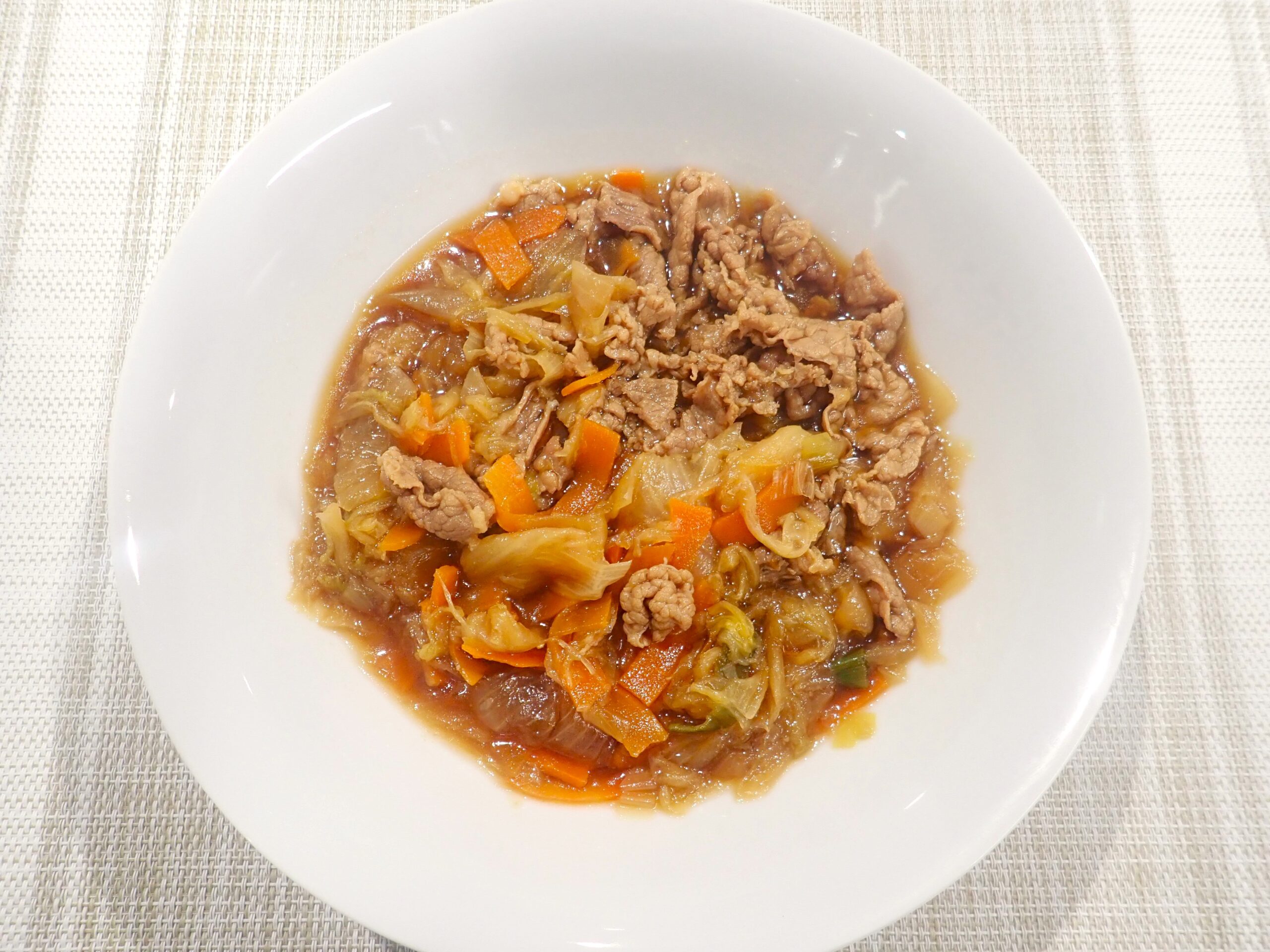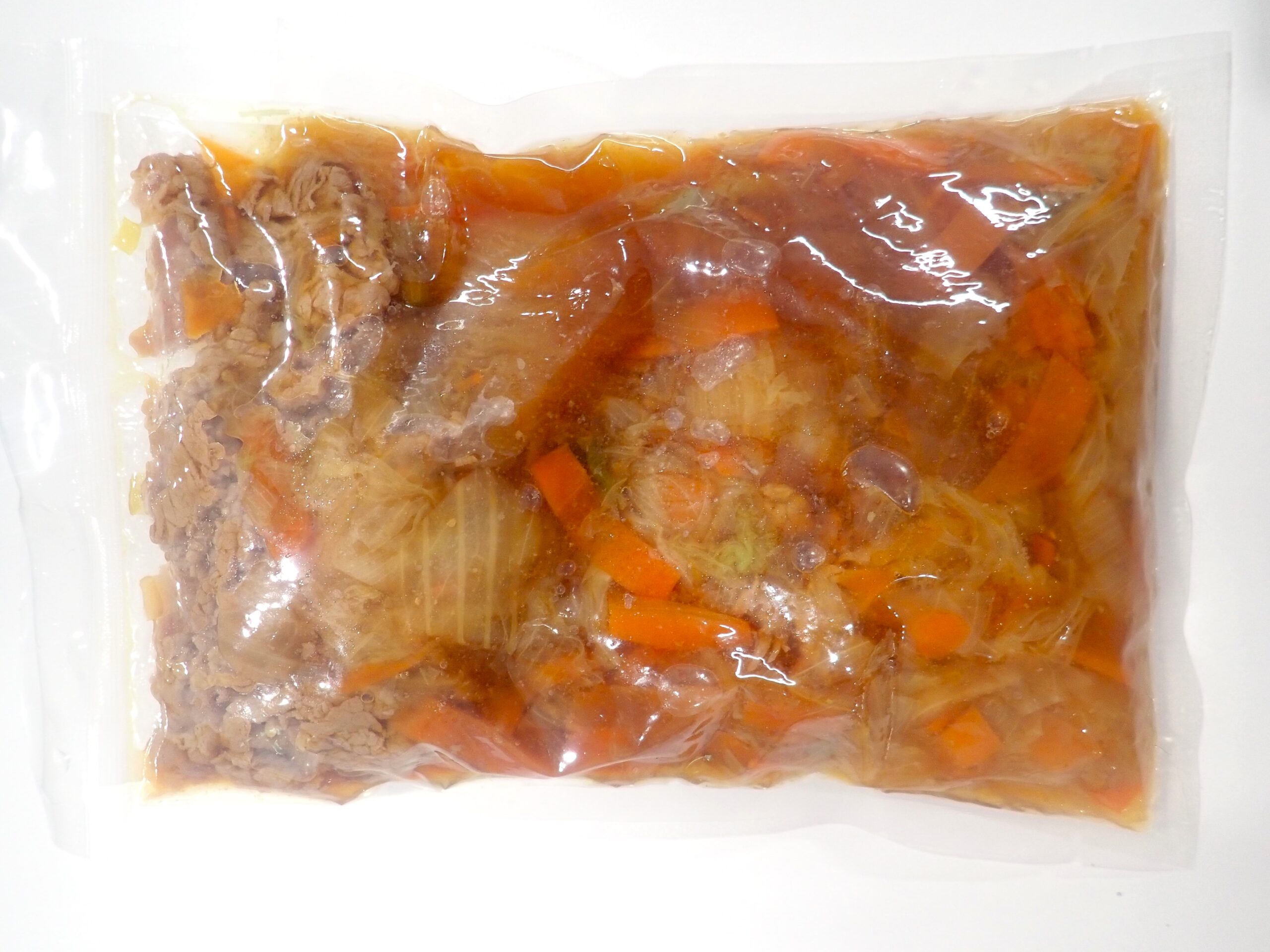 牛肉と野菜(玉葱・人参・白菜・白ネギ)をタレと一緒に煮込みました。
